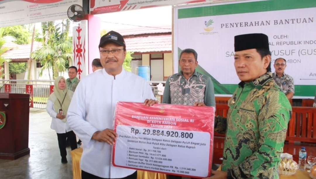 CARAPANDANG - Menteri Sosial (Mensos) Saifullah Yusuf menyerahkan bantuan sosial (bansos) senilai Rp29.884.920.800 dalam kunjungan kerjanya ke Maluku. Bansos sebesar itu diperuntukkan bagi Program Keluarga Harapan (PKH).