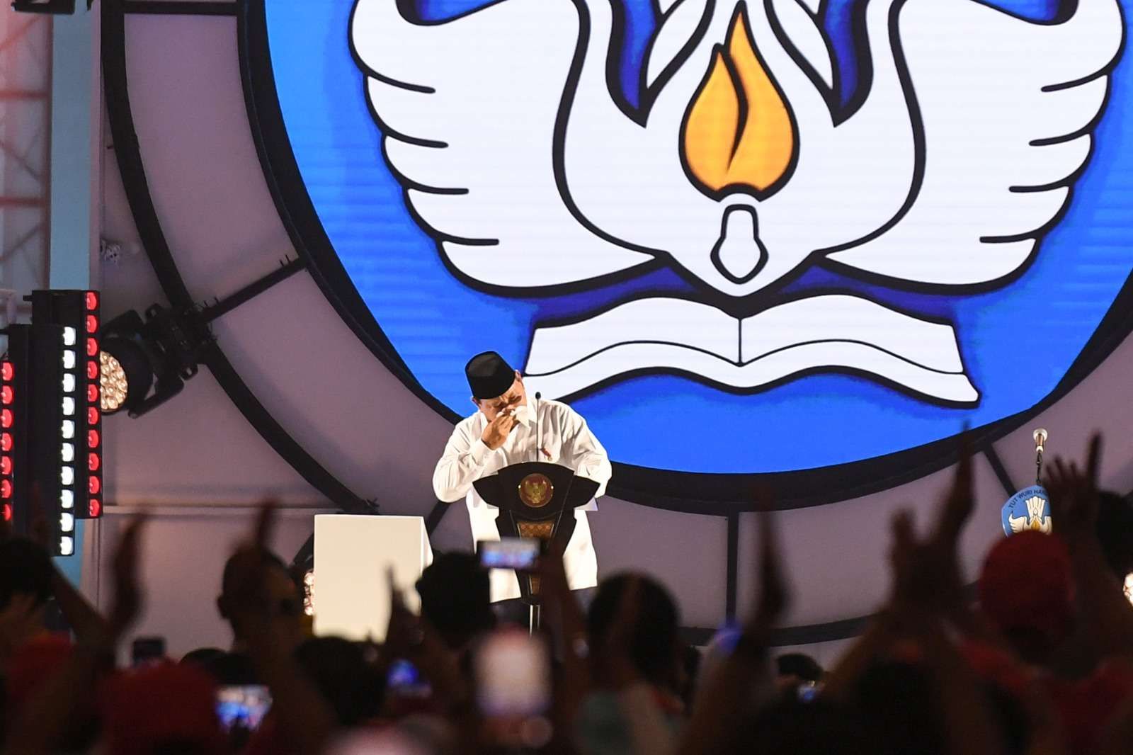 Dalam sambutannya, Presiden menyampaikan kenaikkan gaji untuk guru ASN dan kenaikkan tunjangan profesi untuk guru non ASN. Ia meneteskan air mata saat dirinya menyinggung upaya pemerintah untuk para guru yang belum totalitas.