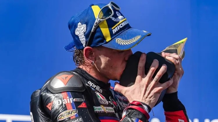 Rekan setimnya, Jorge Martin, finis kedua dan melengkapi dominasi Aprilia. Sementara podium ketiga direbut 'pole sitter', Fabio Di Giannantonio, usai duel sengit melawan Marc Marquez.