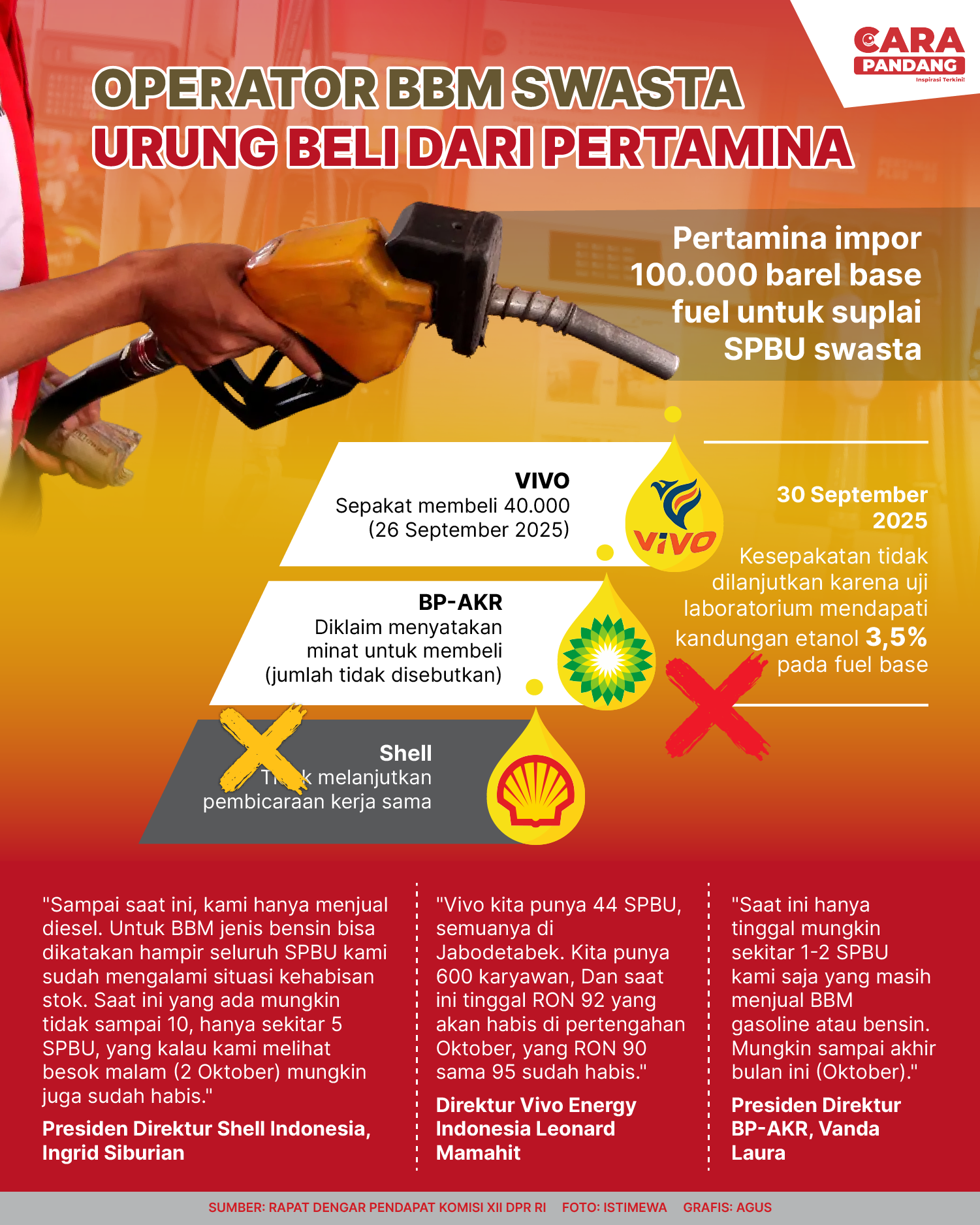 Beranda Infografis Operator BBM Swasta Urung Beli dari Pertamina Infografis Operator BBM Swasta Urung Beli dari Pertamina Penulis Amira Izzati - 05 Oktober 2025 06:31 0 Operator BBM Swasta Urung Beli dari Pertamina Tags Berita Sebelumnya Menkomdigi: PWI Harus Jadi Rumah Nyaman Bagi Wartawan dan Pers Berita Berikutnya Para Tahanan Pro-Palestina yang Mogok Makan di Inggris Hadapi Risiko Kematian LEAVE A REPLY Cancel reply Comment: Please enter your comment! Name:* Please enter your name here Email:* You have entered an incorrect email address! Please enter your email address here Website: Save my name, email, and website in this browser for the next time I comment. Berita Teratas Pemimpin Thailand dan Kamboja Berbicara via Telepon dengan Trump, Bahas Konflik Perbatasan Potret Timur Tengah: Badai Musim Dingin Tewaskan Setidaknya 14 Orang di Gaza yang Porak-Poranda akibat Perang Program Edukasi Bermain Bantu Anak Atasi Kecemasan Saat MRI Gie, Prabowo Presiden Sekarang Masakan Italia Diakui sebagai Warisan Budaya Takbenda UNESCO Berita Terkait Berita Terkait Distribusi Bantuan Banjir Sumatra Lewat Udara Maliq - 06 Desember 2025 14:16 Dampak Banjir Aceh, Sumut dan Sumbar Zoel Rachman - 05 Desember 2025 08:47 Daftar Dosa Korupsi Netanyahu Zoel Rachman - 04 Desember 2025 12:52 Kutipan Pidato Hari Guru Nasional 2025 Maliq - 28 November 2025 12:12
