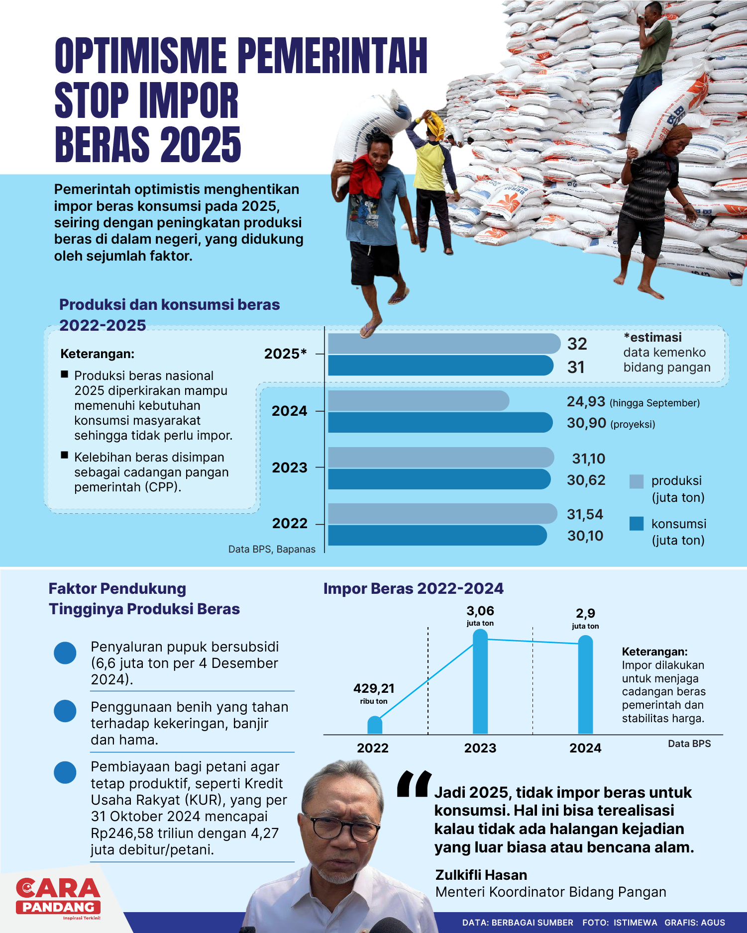 Beranda Infografis Optimisme Pemerintah Stop Impor Beras 2025 Infografis Optimisme Pemerintah Stop Impor Beras 2025 Penulis Amira Izzati - 13 Desember 2024 11:39 0 CARAPANDANG - Optimisme Pemerintah Stop Impor Beras 2025 Tags Berita Sebelumnya Indonesia Juara FIFAe World Cup 2024 Berita Berikutnya Para Tahanan Pro-Palestina yang Mogok Makan di Inggris Hadapi Risiko Kematian LEAVE A REPLY Cancel reply Comment: Please enter your comment! Name:* Please enter your name here Email:* You have entered an incorrect email address! Please enter your email address here Website: Save my name, email, and website in this browser for the next time I comment. Berita Teratas Pemimpin Thailand dan Kamboja Berbicara via Telepon dengan Trump, Bahas Konflik Perbatasan Potret Timur Tengah: Badai Musim Dingin Tewaskan Setidaknya 14 Orang di Gaza yang Porak-Poranda akibat Perang Program Edukasi Bermain Bantu Anak Atasi Kecemasan Saat MRI Gie, Prabowo Presiden Sekarang Maruarar Sirait: Kita Samakan Data, Baru Relokasi Dan Bangun Rumah Korban Banjir Sumatera Berita Terkait Berita Terkait Distribusi Bantuan Banjir Sumatra Lewat Udara Maliq - 06 Desember 2025 14:16 Dampak Banjir Aceh, Sumut dan Sumbar Zoel Rachman - 05 Desember 2025 08:47 Daftar Dosa Korupsi Netanyahu Zoel Rachman - 04 Desember 2025 12:52 Kutipan Pidato Hari Guru Nasional 2025 Maliq - 28 November 2025 12:12