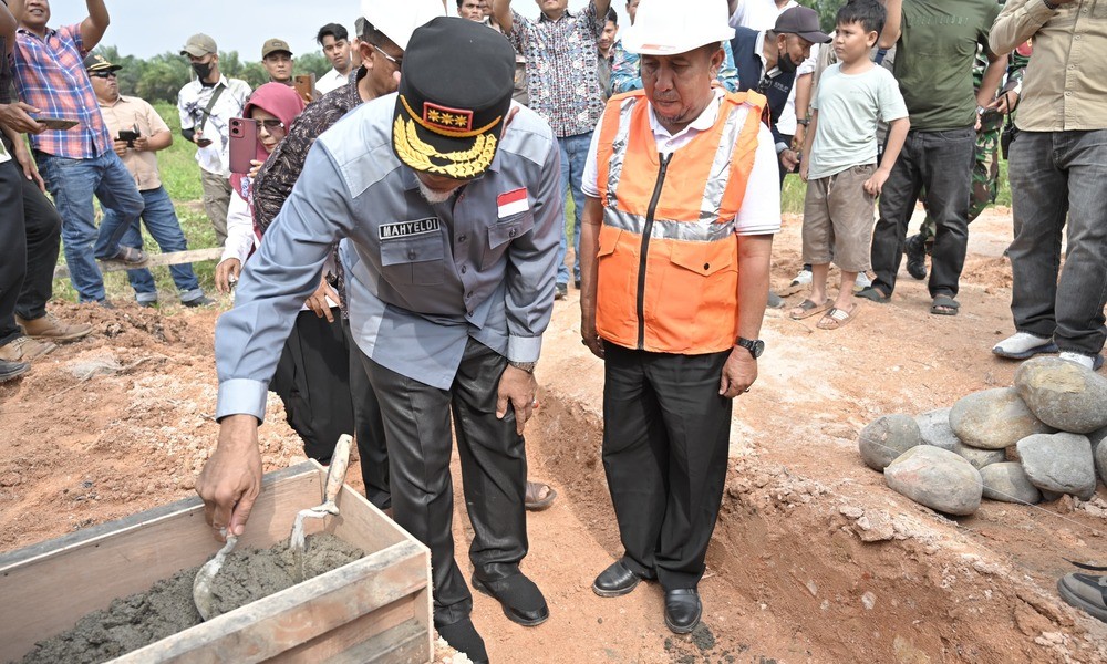 Gubernur Sumatera Barat (Sumbar), Mahyeldi Ansharullah melakukan peletakan batu pertama pembangunan Unit Sekolah Baru (USB) SMK Negeri 1 Sungai Beremas, Kabupaten Pasaman Barat, Kamis (28/9/2023).