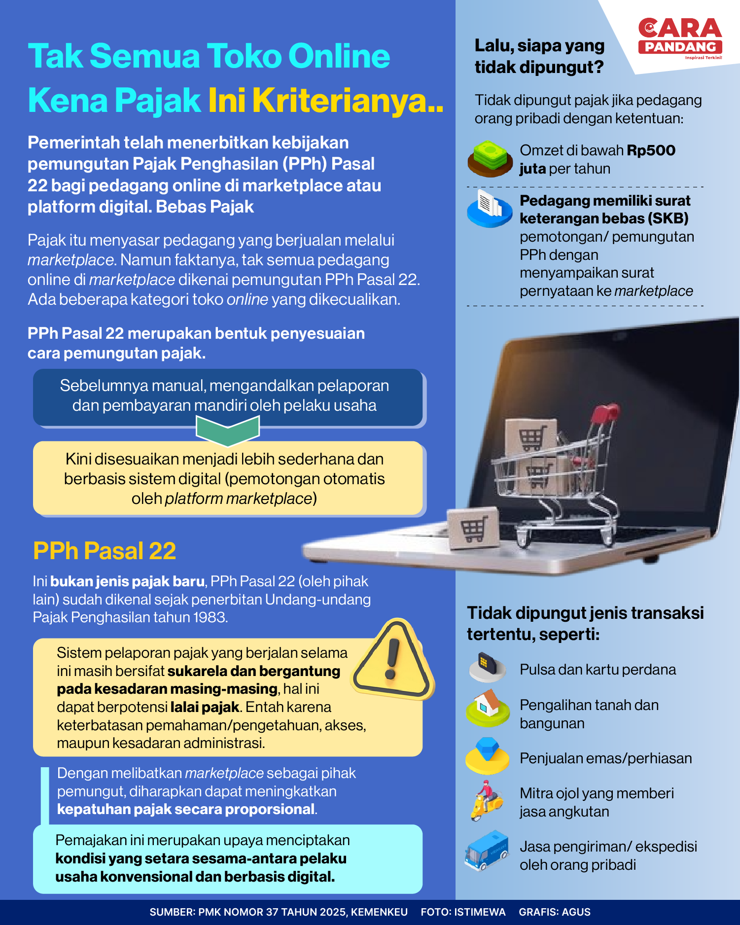 Beranda Infografis Pajak Toko Online Infografis Pajak Toko Online Penulis Amira Izzati - 21 Juli 2025 09:35 0 Pajak Toko Online Tags Berita Sebelumnya Pangeran Tidur Arab Saudi Meninggal Dunia Setelah Koma Selama 20 Tahun Berita Berikutnya TNI AU Kerahkan A400M untuk Antar Logistik ke Lokasi Bencana Aceh LEAVE A REPLY Cancel reply Comment: Please enter your comment! Name:* Please enter your name here Email:* You have entered an incorrect email address! Please enter your email address here Website: Save my name, email, and website in this browser for the next time I comment. Berita Teratas Pemimpin Thailand dan Kamboja Berbicara via Telepon dengan Trump, Bahas Konflik Perbatasan Potret Timur Tengah: Badai Musim Dingin Tewaskan Setidaknya 14 Orang di Gaza yang Porak-Poranda akibat Perang Program Edukasi Bermain Bantu Anak Atasi Kecemasan Saat MRI Maruarar Sirait: Kita Samakan Data, Baru Relokasi Dan Bangun Rumah Korban Banjir Sumatera Gie, Prabowo Presiden Sekarang Berita Terkait Berita Terkait Distribusi Bantuan Banjir Sumatra Lewat Udara Maliq - 06 Desember 2025 14:16 Dampak Banjir Aceh, Sumut dan Sumbar Zoel Rachman - 05 Desember 2025 08:47 Daftar Dosa Korupsi Netanyahu Zoel Rachman - 04 Desember 2025 12:52 Kutipan Pidato Hari Guru Nasional 2025 Maliq - 28 November 2025 12:12