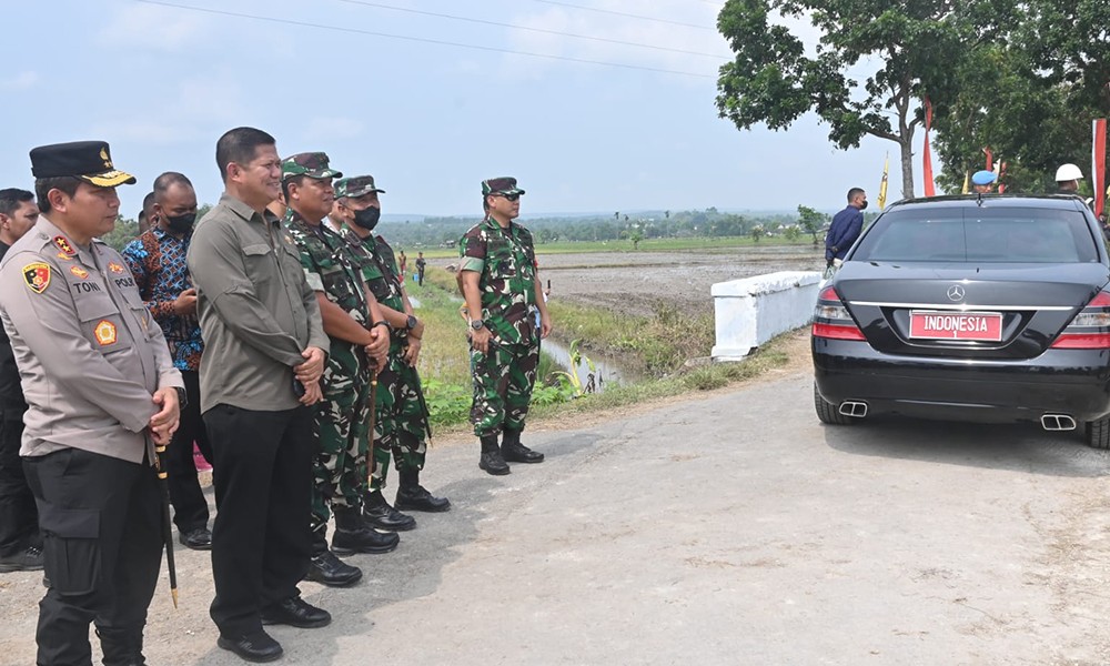 Beberapa pejabat turut hadir mendampingi kunjungan Presiden di Tuban. Salah satunya, Pangdam V/Brawijaya, Mayjen TNI Farid Makruf, M. A.
