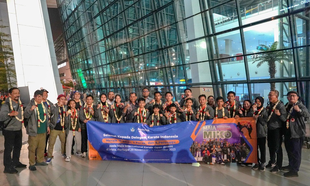 CARAPANDANG - Pelajar Indonesia kembali menorehkan prestasi di Ajang Talenta Internasional. Tim Karate Indonesia yang terdiri dari tujuh belas pelajar dari jenjang SD, SMP, dan SMA berhasil meraih juara umum di ajang Maia International Karate Open (MIKO) yang diselenggarakan pada 2 s.d. 3 Desember 2023 di Maia, Portugal. Tim Karate Indonesia hasil binaan Pusat Prestasi Nasional (Puspresnas), Kementerian Pendidikan, Kebudayaan, Riset, dan Teknologi (Kemendikbudristek), sukses mencatatkan perolehan 10 medali emas, 2 medali perak, dan 4 medali perunggu. Penyambutan Tim Karate Indonesia berlangsung di Terminal 3 Bandara Internasional Soekarno Hatta, Tangerang, Banten, pada Rabu (6/12).