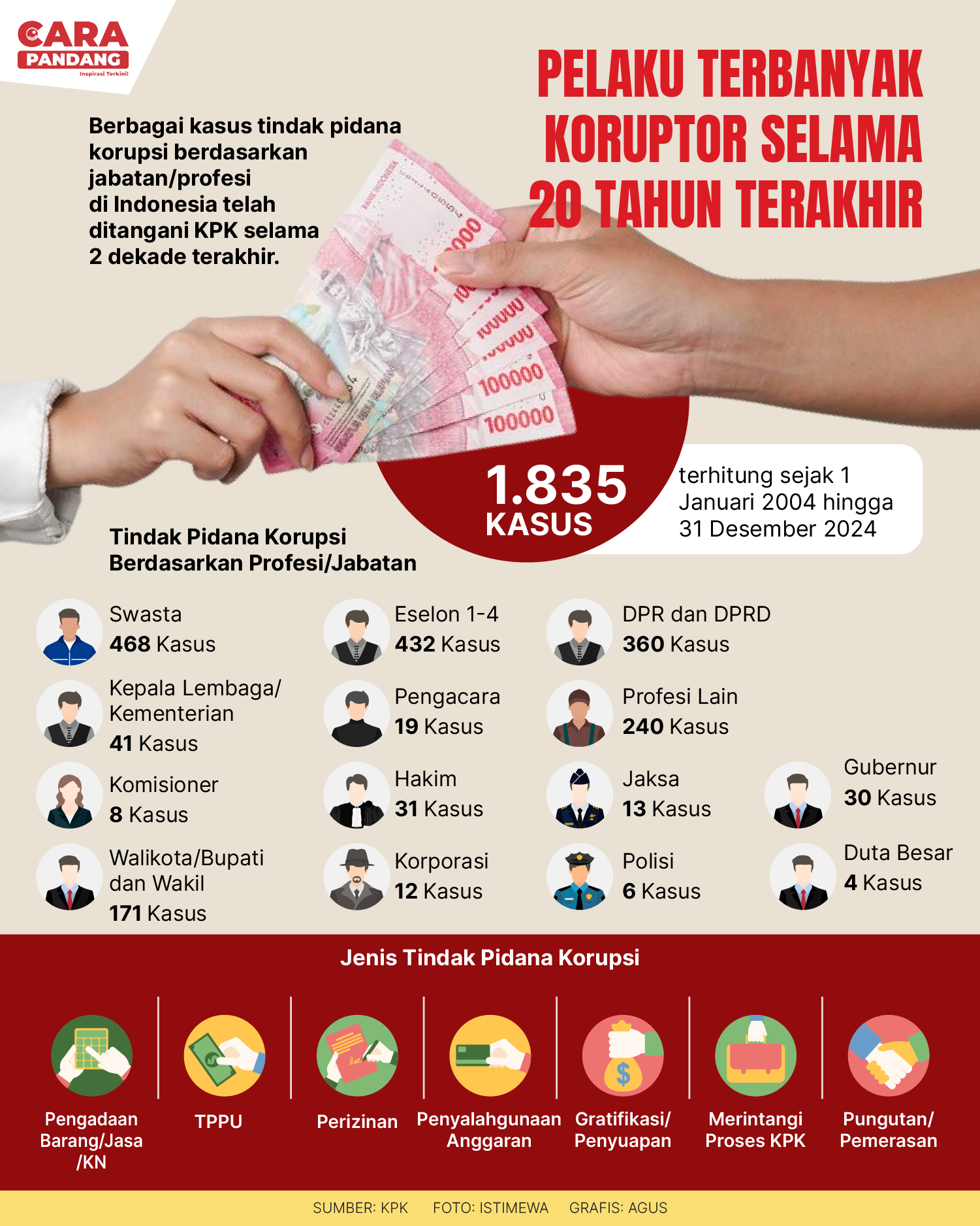 CARAPANDANG - Melansir data statistik yang disajikan Komisi Pemberantasan Korupsi (KPK), hampir 2.000 kasus tindak pidana korupsi telah ditangani selama dua dekade terakhir.