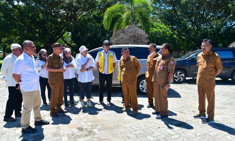 Bupati Pohuwato, Saipul A. Mbuinga bersama Wakil Bupati, Suharsi Igirisa, Ketua DPRD Pohuwato, Nasir Giasi, Sekda Iskandar Datau, Asisten Adminstrasi Umum, Mahyudin Ahmad dan sejumlah pimpinan OPD menyambut kedatangan tim survei dari Direktorat Bina Penat