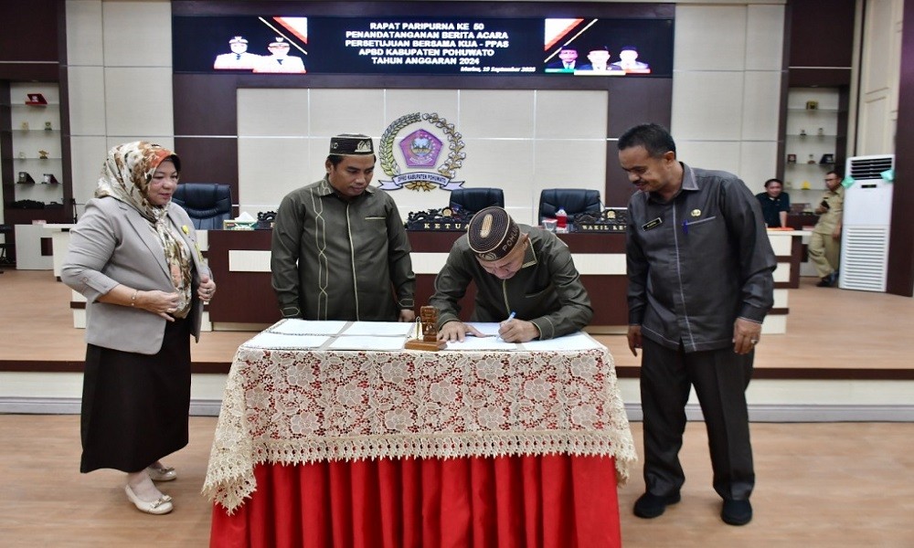 Penandatanganan itu dilakukan Bupati Pohuwato, Saipul A. Mbuinga bersama Wakil Ketua DPRD, Nirwan Due pada Rapat Paripurna ke-50 di ruang sidang DPRD Pohuwato, Selasa, (19/9/2023).