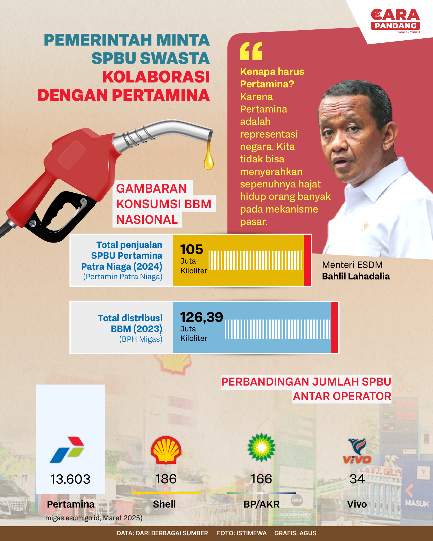 Beranda Infografis Pemerintah Minta SPBU Swasta Kolaborasi dengan Pertamina Infografis Pemerintah Minta SPBU Swasta Kolaborasi dengan Pertamina Penulis Amira Izzati - 20 September 2025 13:07 0 Pemerintah Minta SPBU Swasta Kolaborasi dengan Pertamina Tags Berita Sebelumnya Ruben Amorim Bantah Dipecat MU Berita Berikutnya Para Tahanan Pro-Palestina yang Mogok Makan di Inggris Hadapi Risiko Kematian LEAVE A REPLY Cancel reply Comment: Please enter your comment! Name:* Please enter your name here Email:* You have entered an incorrect email address! Please enter your email address here Website: Save my name, email, and website in this browser for the next time I comment. Berita Teratas Pemimpin Thailand dan Kamboja Berbicara via Telepon dengan Trump, Bahas Konflik Perbatasan Potret Timur Tengah: Badai Musim Dingin Tewaskan Setidaknya 14 Orang di Gaza yang Porak-Poranda akibat Perang Program Edukasi Bermain Bantu Anak Atasi Kecemasan Saat MRI Gie, Prabowo Presiden Sekarang Masakan Italia Diakui sebagai Warisan Budaya Takbenda UNESCO Berita Terkait Berita Terkait Distribusi Bantuan Banjir Sumatra Lewat Udara Maliq - 06 Desember 2025 14:16 Dampak Banjir Aceh, Sumut dan Sumbar Zoel Rachman - 05 Desember 2025 08:47 Daftar Dosa Korupsi Netanyahu Zoel Rachman - 04 Desember 2025 12:52 Kutipan Pidato Hari Guru Nasional 2025 Maliq - 28 November 2025 12:12