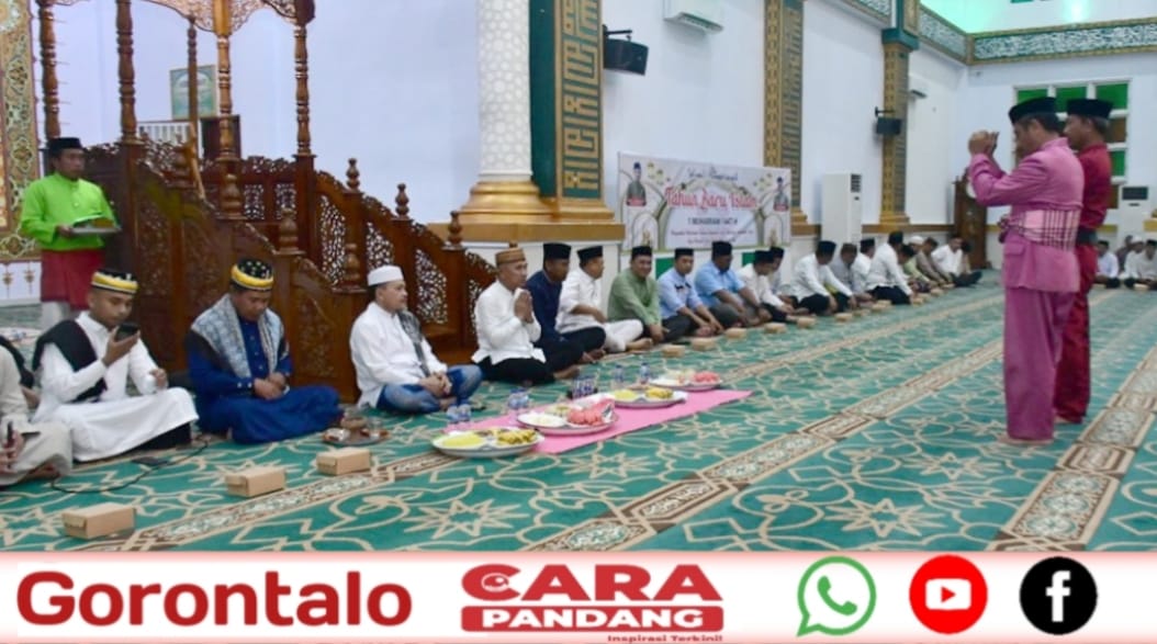 POHUWATO, CARAPANDANG - Pemerintah Kabupaten Pohuwato bersama lembaga adat menggelar doa awal tahun dalam rangka menyambut Tahun Baru Islam 1 Muharram 1447 Hijriah yang berlangsung khidmat di Masjid Agung Baiturrahim, Kamis, (26/06/2025).