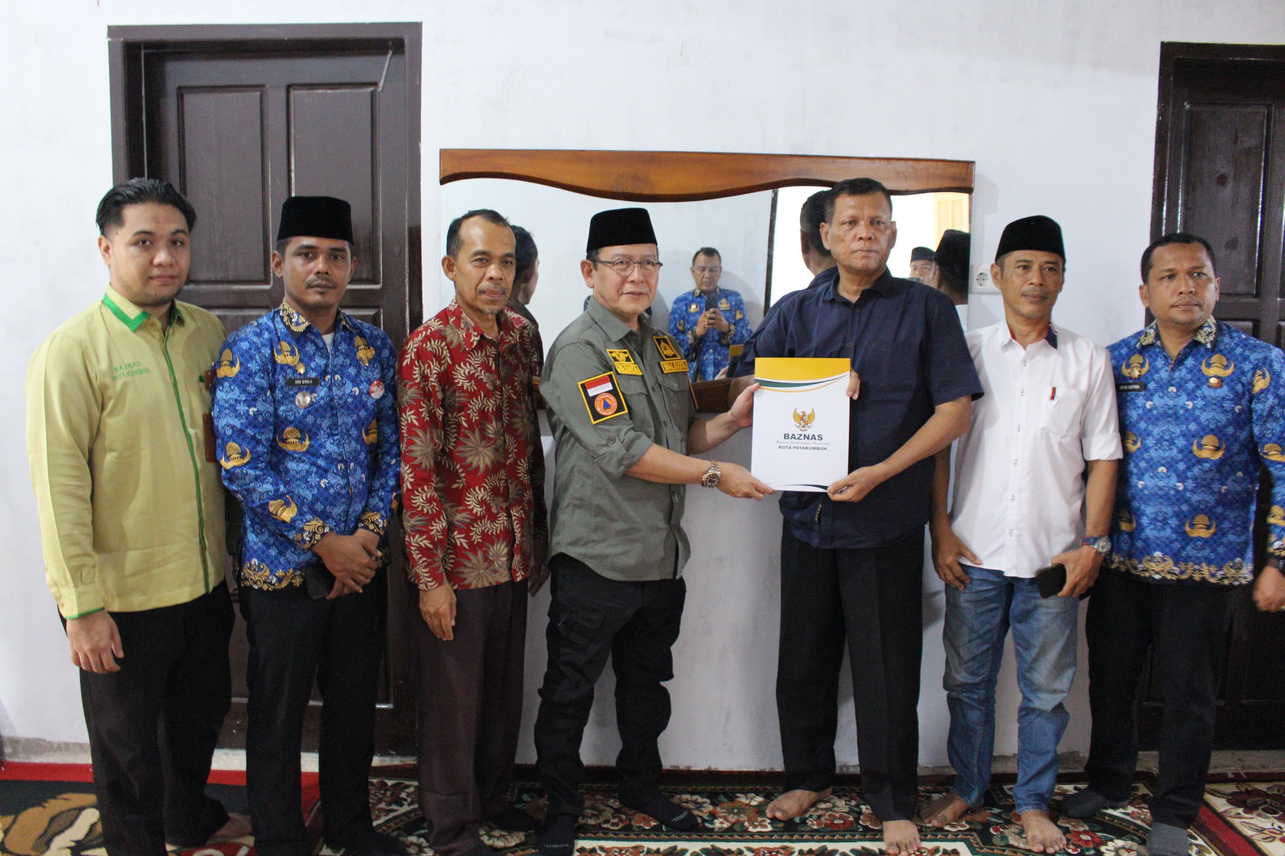 PAYAKUMBUH, CARAPANDANG - Pemerintah Kota Payakumbuh bersama Badan Amil Zakat Nasional (Baznas) Kota Payakumbuh menyalurkan santunan sosial kepada keluarga almarhum Angger, warga Payakumbuh yang menjadi korban bencana galodo di kawasan Jembatan Kembar, Kota Padang Panjang.