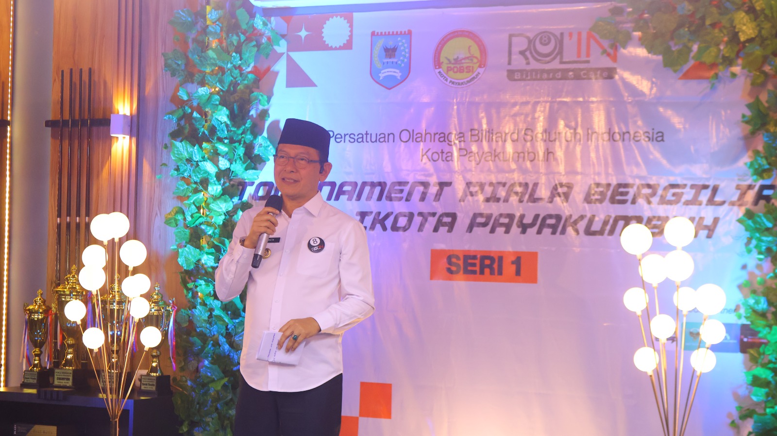 PAYAKUMBUH, CARAPANDANG - Pemerintah Kota Payakumbuh kembali menunjukkan komitmennya dalam mendukung kegiatan positif masyarakat, khususnya generasi muda. Hal ini ditandai dengan dibukanya secara resmi Turnamen Piala Bergilir Wali Kota Payakumbuh Seri 1 yang digelar di Rol’in Billiard & Café, Rabu (21/5/2025) malam.