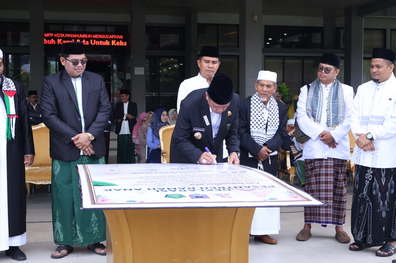 Apel peringatan dipimpin langsung oleh Wakil Wali Kota Payakumbuh, Elzadaswarman, yang bertindak sebagai inspektur upacara dan membacakan Amanat Menteri Agama RI, Prof. Dr. KH. Nasaruddin Umar, MA.
