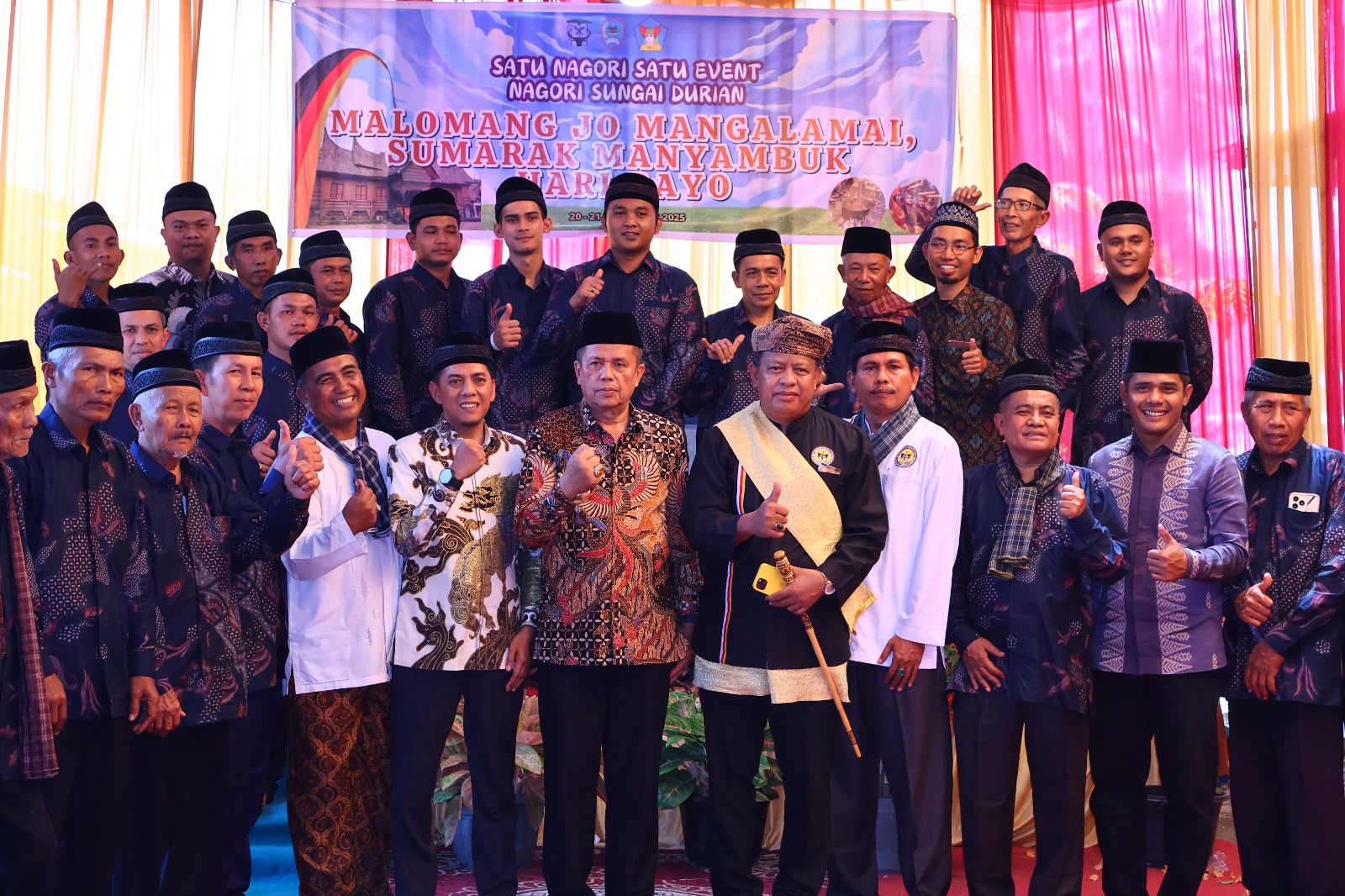 Pada Minggu (21/9/2025), giliran Nagari Sungai Durian, Kecamatan Lamposi Tigo Nagori, yang menggelar kegiatan bertema “Malomang jo Mangalamai, Sumarak Manyambuik Hari Rayo”. Acara ini menghadirkan prosesi adat lengkap dengan keikutsertaan ninik mamak, bundo kanduang, tokoh masyarakat, hingga generasi muda.