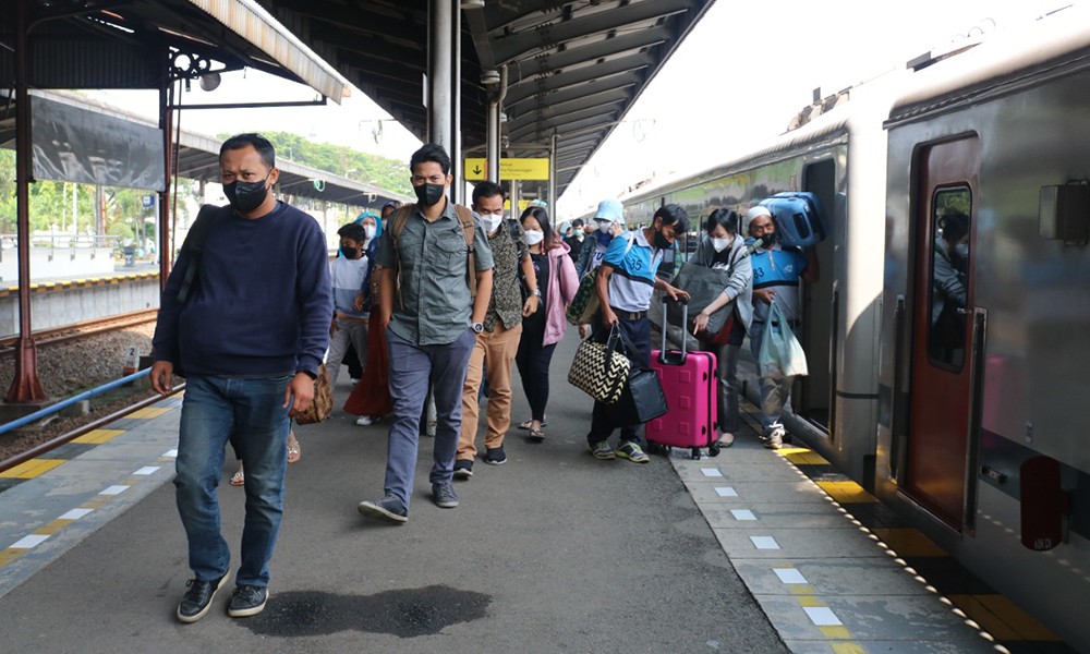 Kahumas KAI Daop 1 Jakarta Eva Chairunisa mengatakan, volume penumpang Kereta Api Jarak Jauh (KAJJ) dari Stasiun Gambir dan Pasar Senen mengalami lonjakan hampir dua kai lipat.