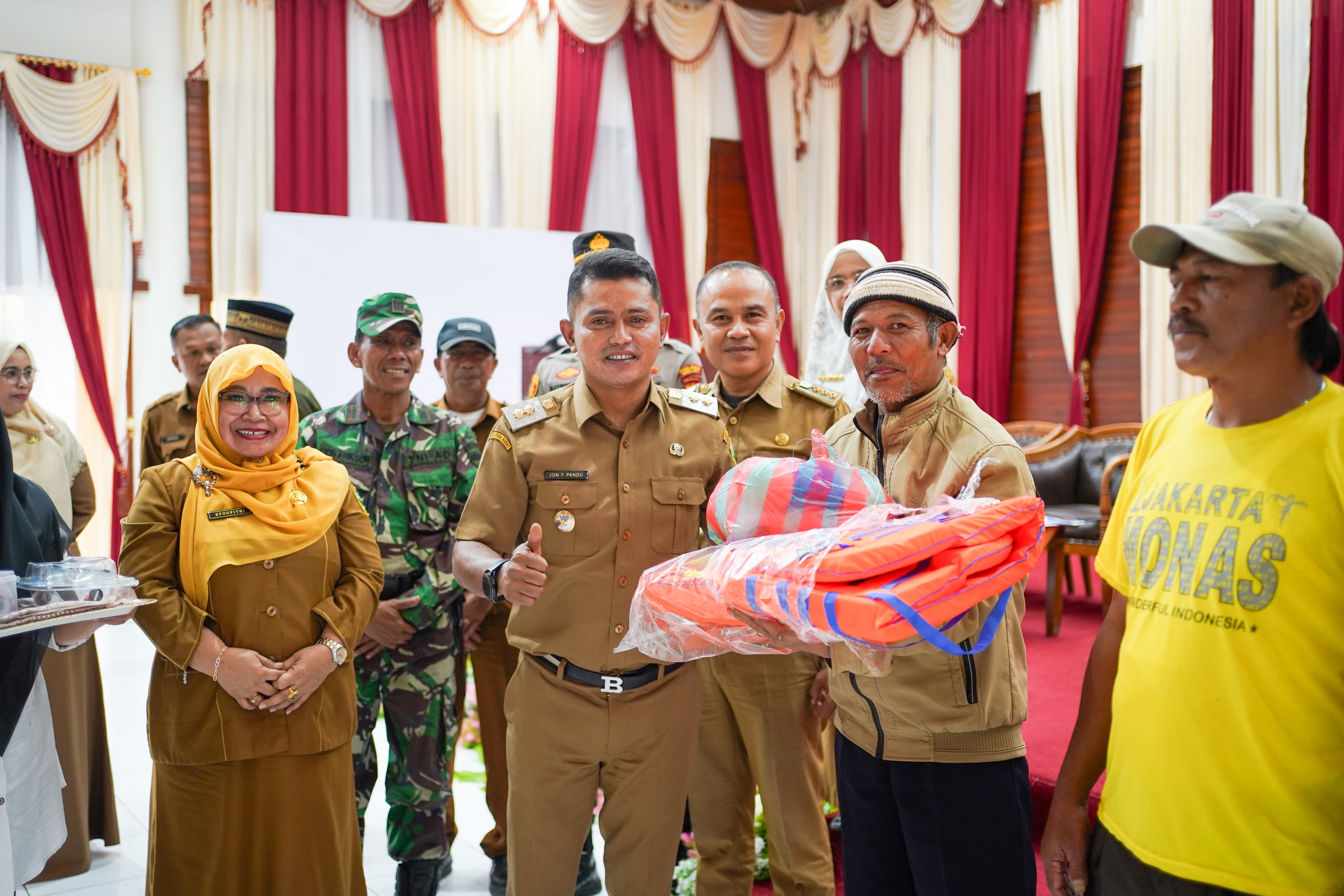 Wakil Bupati Solok, Jon Firman Pandu, SH, dalam sambutannya menyatakan rasa syukur atas terlaksananya acara ini. "Alhamdulillah pada hari ini di tengah kesibukan, kita bisa hadir bersama-sama di sini dalam rangka penyerahan bantuan alat penangkapan ikan untuk 5 kelompok nelayan yang ada di salingka Danau Diatas ini. Ini merupakan bentuk kepedulian Pemerintah Daerah kepada masyarakat Kabupaten Solok terutama kepada kelompok nelayan," ujar Jon Firman Pandu.