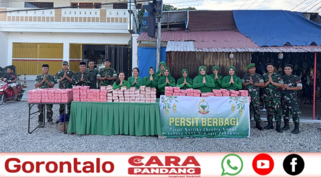 POHUWATO, CARAPANDANG - Aksi berbagi di bulan Ramadan kembali terlihat di Kabupaten Pohuwato. Kali ini, jajaran Persit Kartika Chandra Kirana Cabang LXIX bersama anggota Kodim 1313/Pohuwato turun langsung ke jalan membagikan takjil kepada masyarakat.