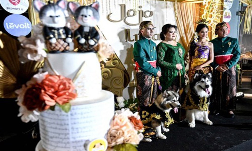CARAPANDANG - Dua ekor anjing yang menggemaskan menikah dalam sebuah upacara pernikahan spesial yang diadakan oleh pemiliknya di Jakarta. Kedua anjing tersebut didandani dengan kostum bernuansa adat Jawa yang dibuat khusus untuk pasangan pengantin berbulu itu.