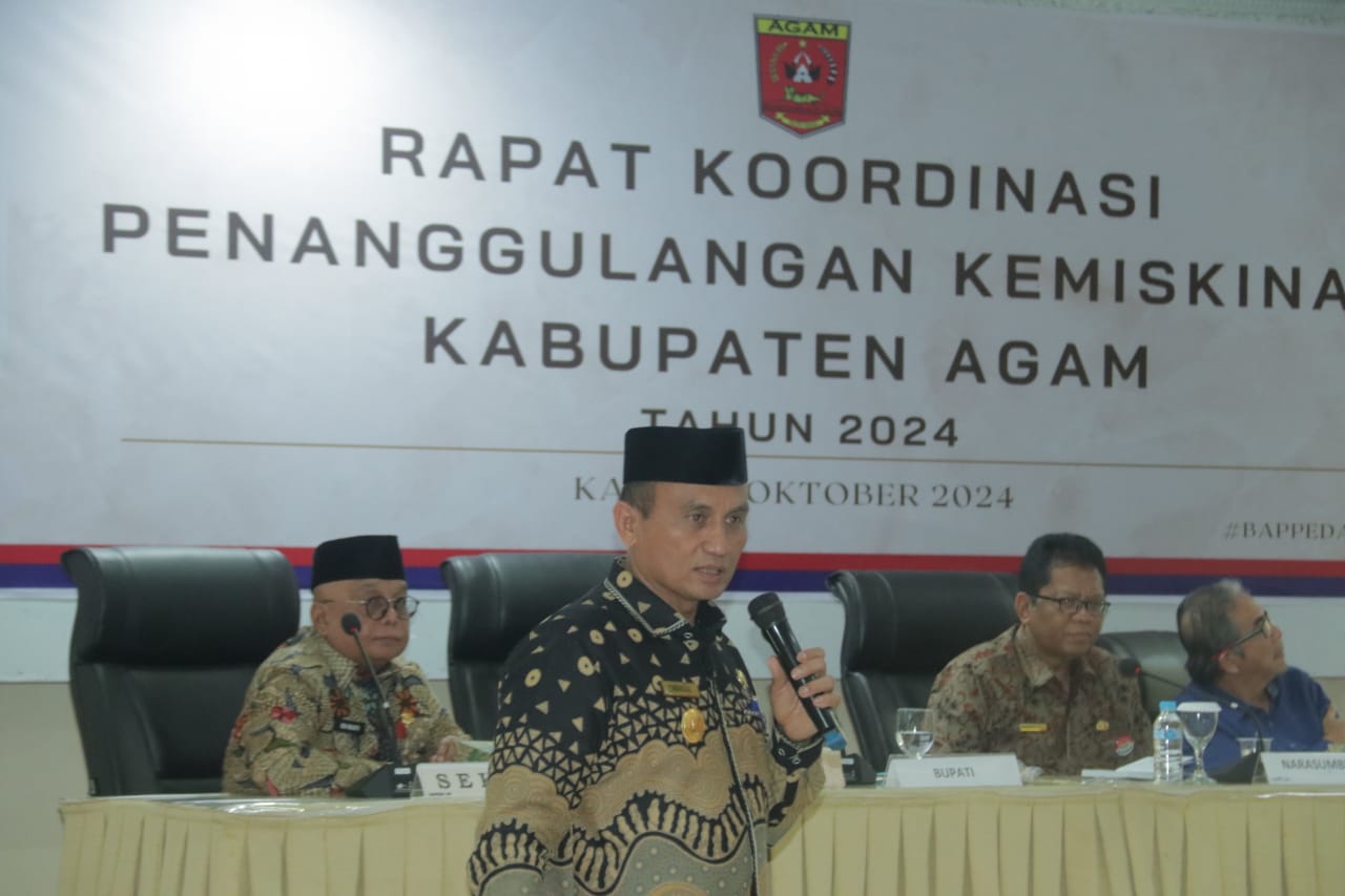 Dalam sambutannya, Dr. Endrizal, SE, MSi, menekankan pentingnya komitmen seluruh OPD dalam mendukung program pengentasan kemiskinan. Ia menegaskan bahwa penurunan angka kemiskinan merupakan salah satu prioritas utama Pemerintah Kabupaten Agam saat ini.