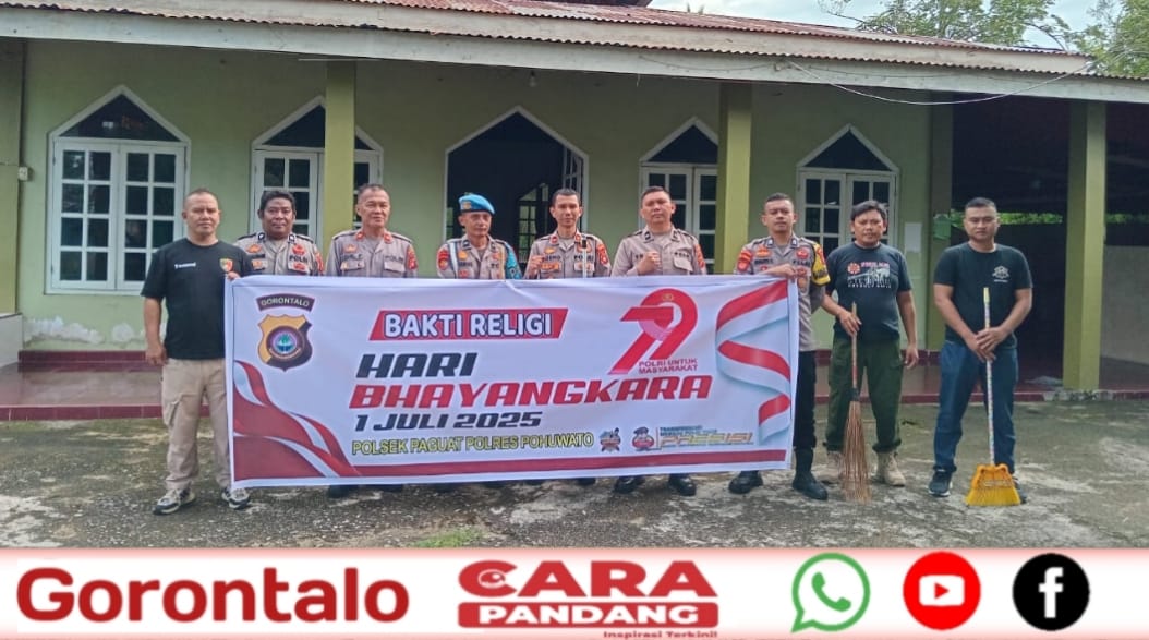 Dalam rangka menyambut Hari Bhayangkara ke-79 tahun 2025, Personel Polres  Pohuwato dan jajarannya melaksanakan  kegiatan Bakti Religi  di sejumlah tempat Ibadah seperti Mesjid, Gereja dan Pura yang  ada di wilayah Kabupaten Pohuwato Jumat (13/06/2025).