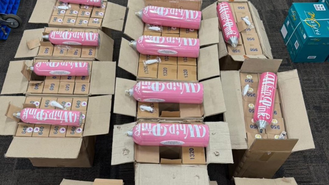 'Setelah dilakukan pengecekan pada lokasi dimaksud, tim Subdit III Dittipidnarkoba Bareskrim Polri mendapati mesin pengisian gas N2O dari tabung besar ukuran 27 kilogram, 30 kilogram, dan 32 kilogram ke tabung kecil merk Whip Pink ukuran 580 gram, 640 gram, 950 gram, 1.320 gram, dan 2.050 gram," tuturnya.