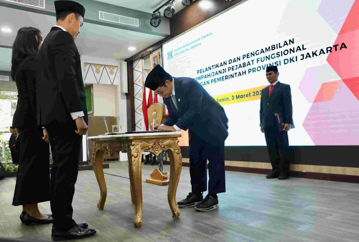 CARAPANDANG.COM- Gubernur DKI Jakarta Pramono Anung Wibowo melantik 668 pejabat fungsional guru ahli pertama di Balai Kota Jakarta, Senin.