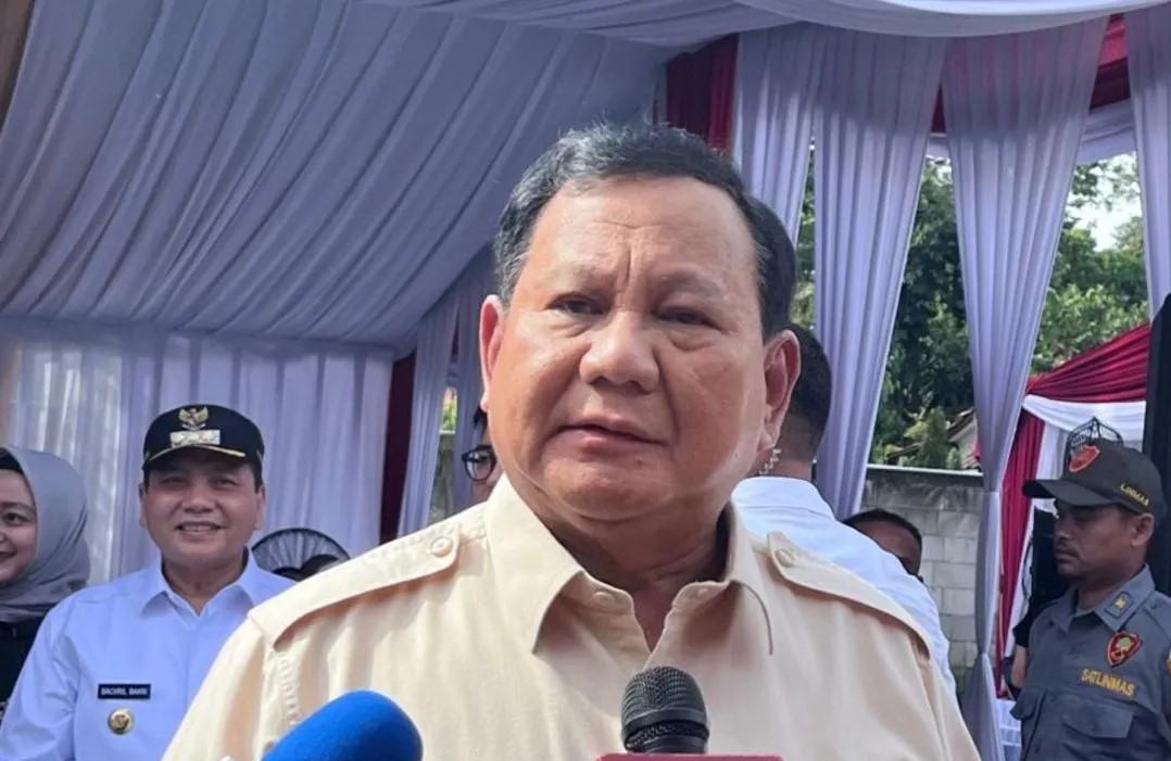 Presiden Prabowo Subianto dalam wawancara cegat dengan wartawan usai mencoblos di TPS 08, Desa Bojong Koneng, Babakan Madang, Bogor, Jawa Barat, Rabu (27/11/2024). ANTARA/Fathur Rochman.