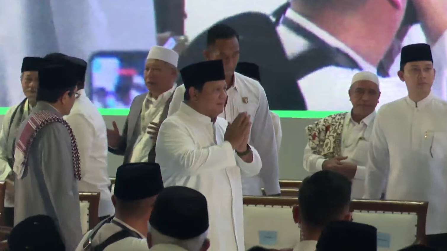 Presiden mengenakan baju muslim (koko) putih, dan peci hitam, tiba di Masjid Istiqlal sekitar pukul 10.00 WIB. Nampak hadir dalam acara tersebut, sejumlah jajaran menteri dalam Kabinet Merah Putih.