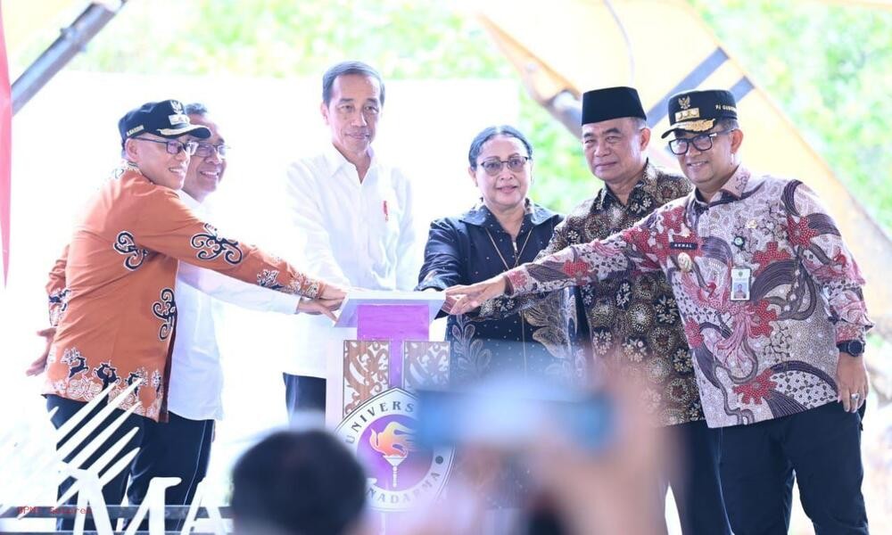 Presiden Joko Widodo meresmikan peletakan batu pertama atau groundbreaking Gedung II Kampus Nusantara Program Studi di Luar Kampus Utama (PSDKU) Universitas Gunadarma