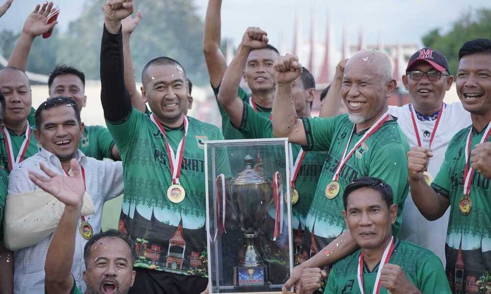 SUMBAR, CARAPANDANG.COM - Persatuan Sepak Bola Pemerintah Provinsi Sumatera Barat (PS. Pemprov Sumbar) keluar sebagai juara I Turnamen Sepakbola Piala Gubernur Cup 2023, Selasa (15/8/2023). PS. Pemprov Sumbar berhasil menundukkan tim kuat PSAD Korem Wirabraja 032 di partai final dengan skor 3-2.