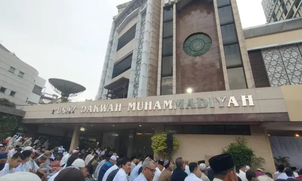 Jamaah shalat Idul Adha di Gedung PP Muhammadiyah pada Rabu pagi yang cerah membeludak hingga ke bagian Jalan Raya Menteng.