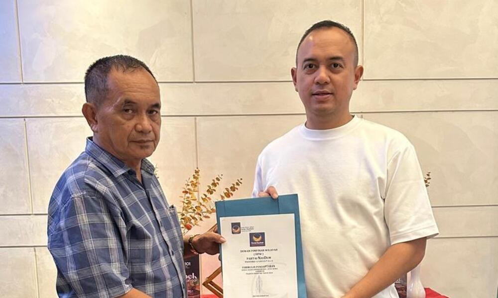 POHUWATO, CARAPANDANG - Keseriusan Rama Datau untuk bertarung pada Pemilihan Gubernur di bulan November mendatang ternyata bukan hanya sekedar cerita, hari ini dibuktikan Ketua Garda Pemuda NasDem dan mantan ketua PB HIPMI Jaya ini resmi mendaftarkan diri ke DPW NasDem.