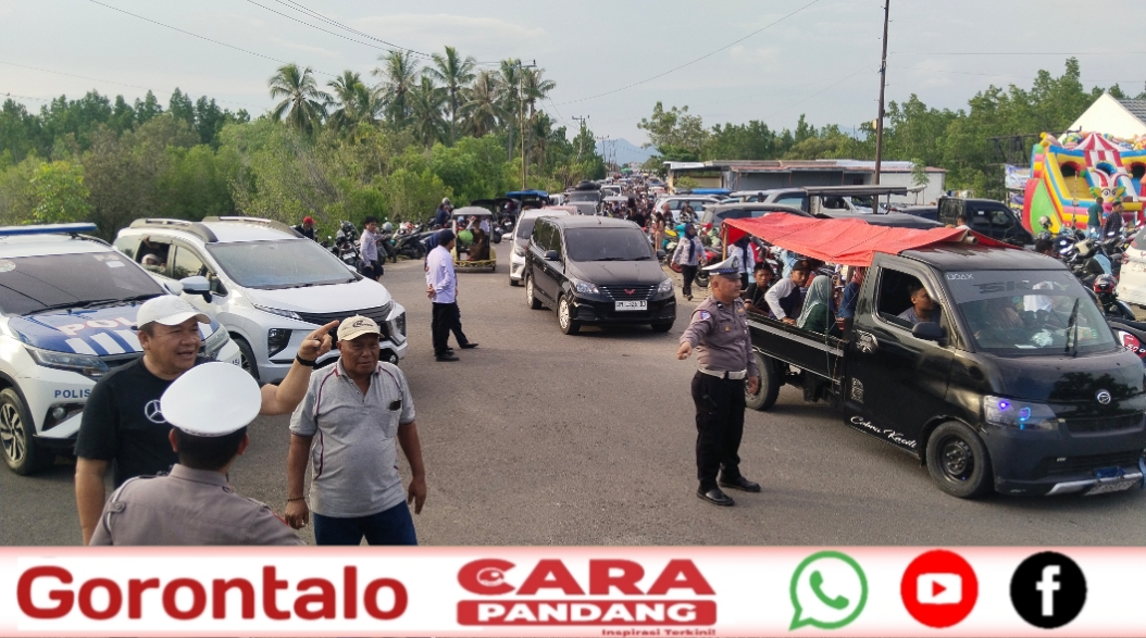 Guna mengurai kepadatan lalu lintas, jajaran Kepolisian Resor Pohuwato bersama Dinas Perhubungan Kabupaten Pohuwato turun langsung melakukan pengamanan dan pengaturan arus kendaraan di lapangan. Pengaturan lalu lintas dipimpin langsung oleh Kasat Lantas Polres Pohuwato, Jefriansyah Tangahu.