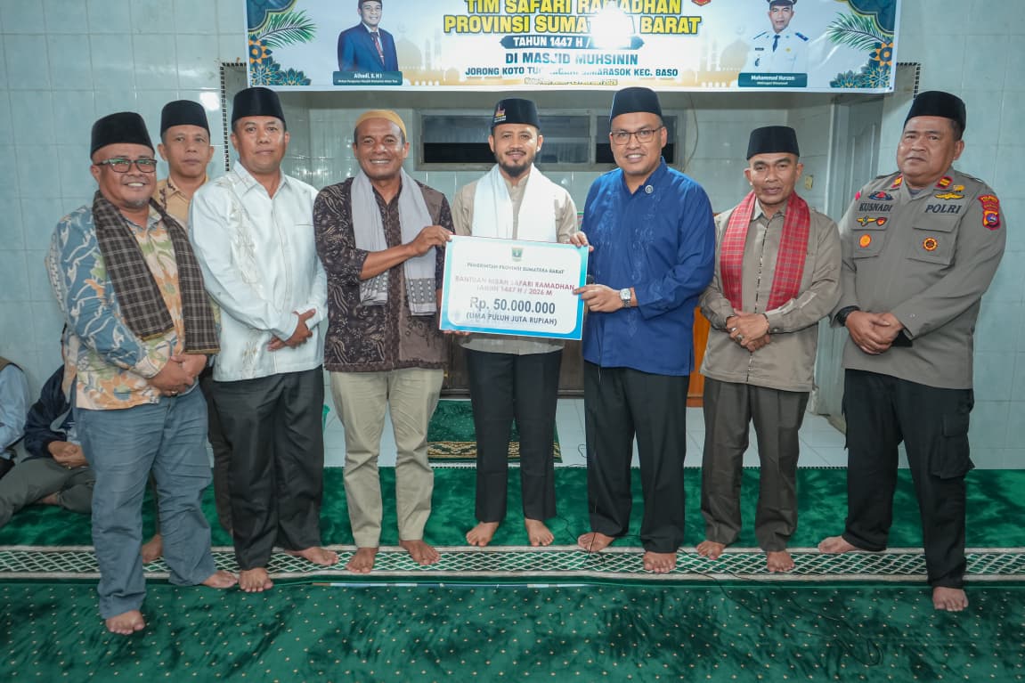 SUMBAR, CARAPANDANG - Sekretaris Daerah Provinsi Sumatera Barat (Sekdaprov Sumbar), Arry Yuswandi memimpin Safari Ramadan 1447 H di Masjid Muhsinin Koto Tuo, Nagari Simarasok, Kecamatan Baso, Kabupaten Agam, Senin (23/2/2026). Kegiatan diawali dengan berbuka puasa bersama masyarakat, dilanjutkan salat Isya dan tarawih berjemaah.