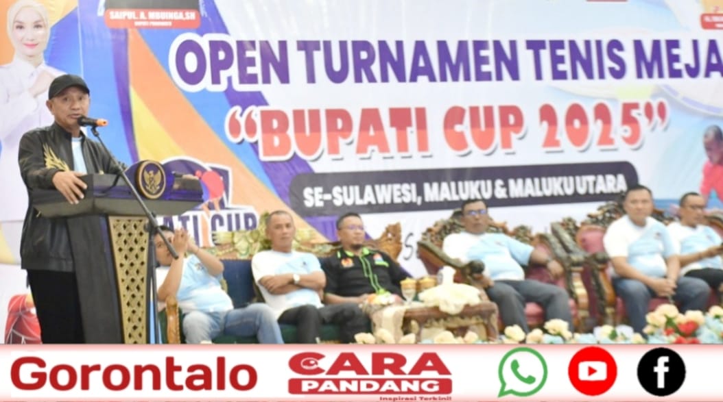 POHUWATO, CARAPANDANG - Dalam rangka memperingati Hari Ulang Tahun ke-80 Kemerdekaan Republik Indonesia, Persatuan Tenis Meja Indonesia Kabupaten Pohuwato bekerja sama dengan Organisasi Kolaborasi Muda Andalan Pohuwato (Komando) menggelar Open Turnamen Tenis Meja Bupati CUP 2025 se-Sulawesi, Maluku, dan Maluku Utara.