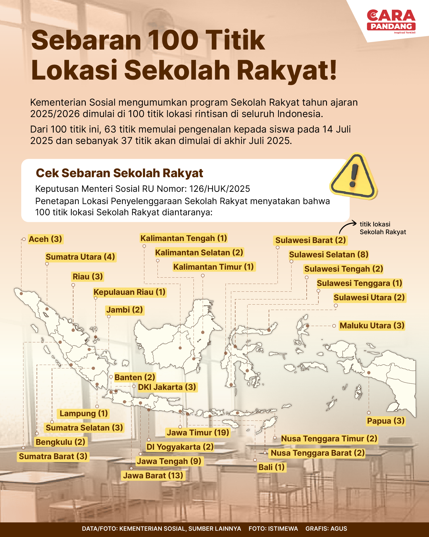 Beranda Infografis Sebaran Lokasi Sekolah Rakyat Infografis Sebaran Lokasi Sekolah Rakyat Penulis Amira Izzati - 31 Juli 2025 10:20 0 Sebaran Lokasi Sekolah Rakyat Tags Berita Sebelumnya Mantan Menag Suryadarma Ali Meninggal Dunia Berita Berikutnya TNI AU Kerahkan A400M untuk Antar Logistik ke Lokasi Bencana Aceh LEAVE A REPLY Cancel reply Comment: Please enter your comment! Name:* Please enter your name here Email:* You have entered an incorrect email address! Please enter your email address here Website: Save my name, email, and website in this browser for the next time I comment. Berita Teratas Pemimpin Thailand dan Kamboja Berbicara via Telepon dengan Trump, Bahas Konflik Perbatasan Potret Timur Tengah: Badai Musim Dingin Tewaskan Setidaknya 14 Orang di Gaza yang Porak-Poranda akibat Perang Program Edukasi Bermain Bantu Anak Atasi Kecemasan Saat MRI Gie, Prabowo Presiden Sekarang Maruarar Sirait: Kita Samakan Data, Baru Relokasi Dan Bangun Rumah Korban Banjir Sumatera Berita Terkait Berita Terkait Distribusi Bantuan Banjir Sumatra Lewat Udara Maliq - 06 Desember 2025 14:16 Dampak Banjir Aceh, Sumut dan Sumbar Zoel Rachman - 05 Desember 2025 08:47 Daftar Dosa Korupsi Netanyahu Zoel Rachman - 04 Desember 2025 12:52 Kutipan Pidato Hari Guru Nasional 2025 Maliq - 28 November 2025 12:12