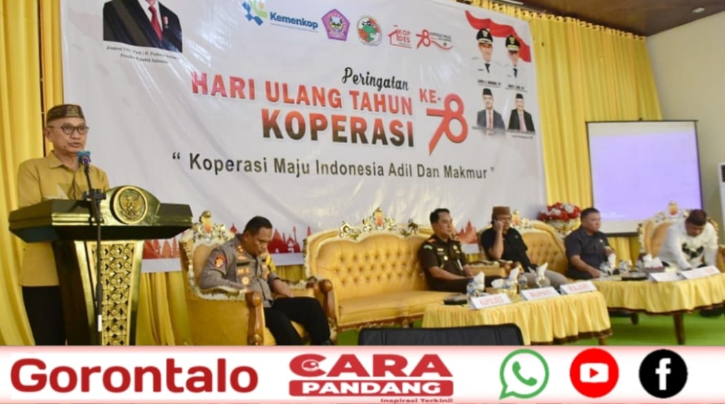 POHUWATO, CARAPANDANG - Semangat kebersamaan dan gotong royong mewarnai Peringatan Hari Ulang Tahun (HUT) Koperasi ke-78 di Kabupaten Pohuwato yang digelar di Gedung Panua. Acara ini dihadiri langsung oleh Bupati Pohuwato, Saipul A. Mbuinga, bersama jajaran Forkopimda, Kadis Kumperindag Provinsi Gorontalo, pimpinan OPD, camat, kepala desa, hingga jajaran pengurus Koperasi Desa/Kelurahan Merah Putih (Kopdes MP).