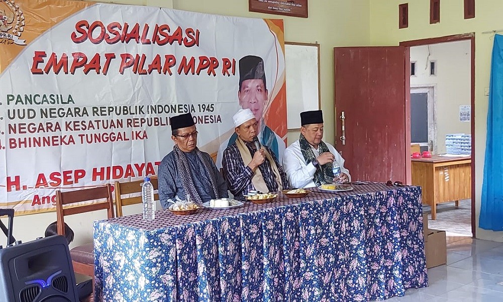 CARAPANDANG - Anggota DPD RI daerah pemilihan (Dapil) Jawa Barat, H. Asep Hidayat, S. Ag menggelar kegiatan Sosialisasi 4 Pilar MPR RI di Pondok Pesantren Al Muslihuun, Kabupaten Ciamis pada Jumat 19 Mei 2023.