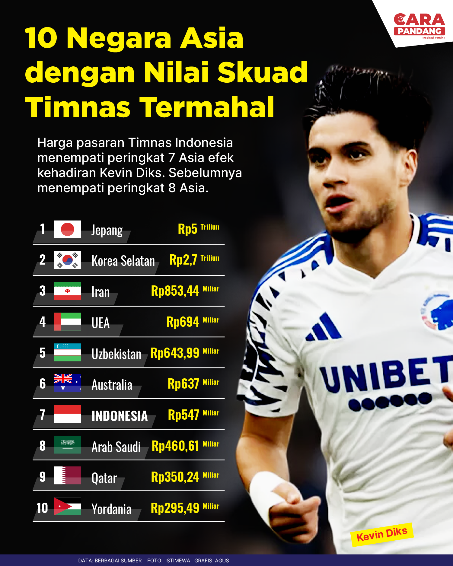 CARAPANDANG.COM - Inilah 10 negara asia dengan nilai Skuad Timnas termahal.