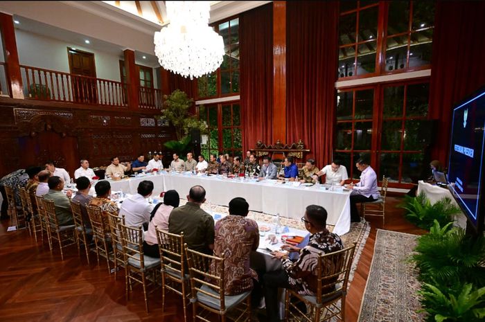 Presiden Prabowo Subianto memimpin rapat bersama sejumlah menteri Kabinet Merah Putih di kediaman pribadinya, Jalan Kertanegara, Jakarta, Minggu (28/9) malam.
