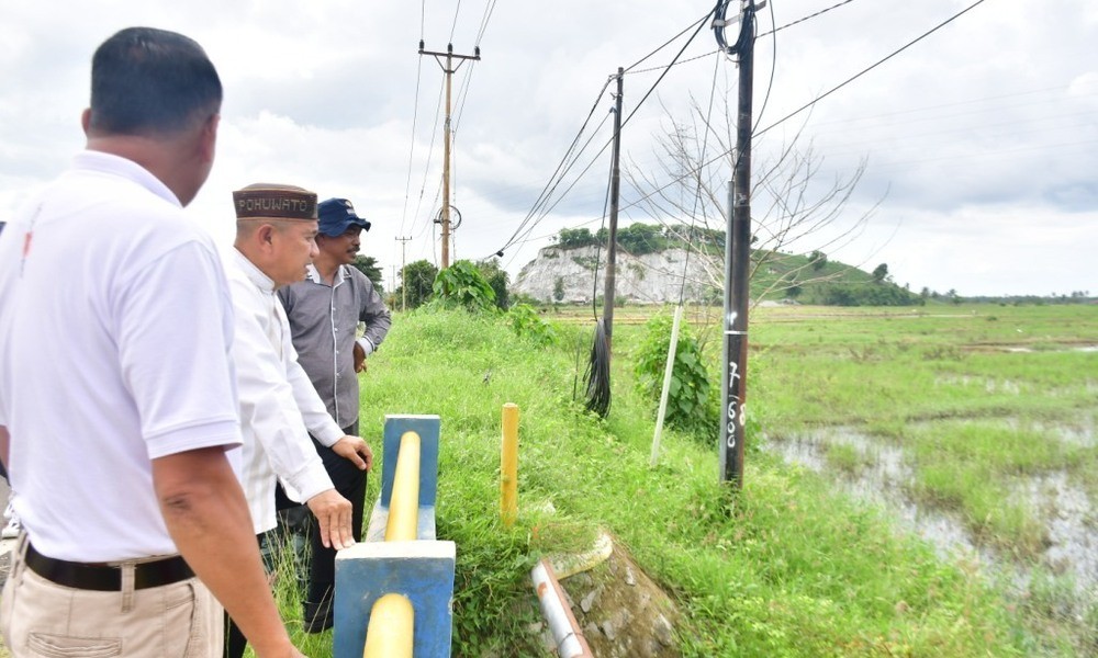 Menyikapi keluhan para petani dan kelompok tani, Bupati Pohuwato, Saipul A. Mbuinga didampingi Kadis Pertanian, Kamri Alwi, Camat Buntulia, Saiful Hunta, dan Camat Duhiadaa, Ali Mbuinga turun langsung melihat dari dekat seperti apa saluran yang hanya dilewati oleh air hujan tersebut, Jum’at, (26/01/2024).