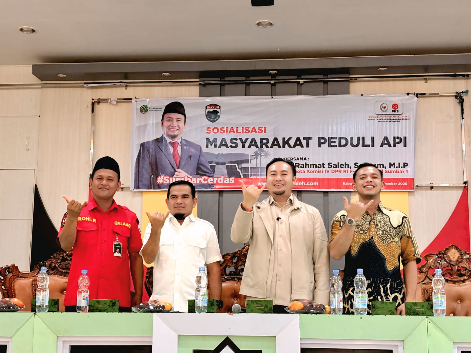 SOLOK, CARAPANDANG - Upaya meningkatkan kesadaran masyarakat dalam mencegah kebakaran hutan dan lahan kembali ditunjukkan melalui kegiatan Sosialisasi Masyarakat Peduli Api yang digelar pada Sabtu, (15/11/2025) di Gedung Serba Guna Islamic Center Koto Baru. Kegiatan ini diselenggarakan oleh Anggota Komisi IV DPR-RI Fraksi PKS, H. Rahmat Saleh, S.Farm, M.I.P, dengan menghadirkan narasumber dari Balai Pengendalian Perubahan Iklim dan Kebakaran Hutan dan Lahan (Dalkarhut) Wilayah Sumatera.