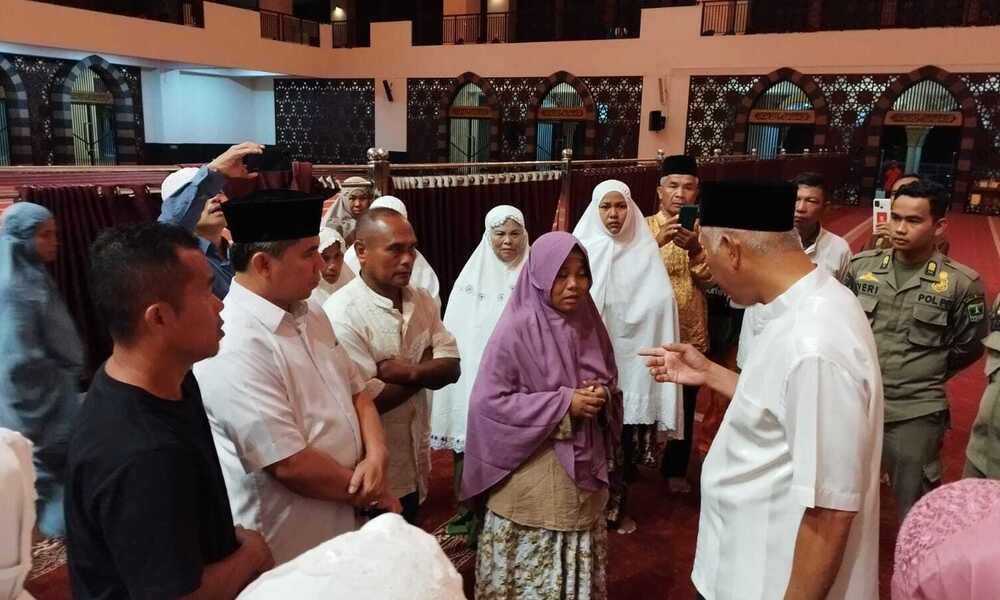 Gubernur Sumatera Barat, Mahyeldi Ansharullah temui warga Air bangis yang telah 3 hari melakukan unjuk rasa di halaman Kantor Gubernur saat sholat subuh di Masjid Raya Sumbar, Kamis (3/08/2023).