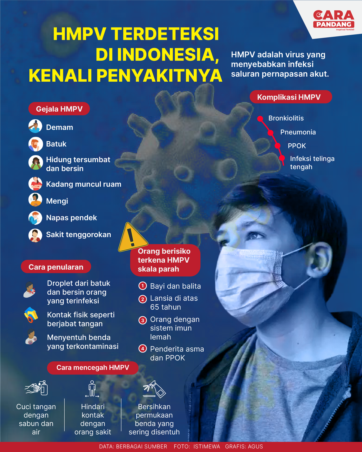 Beranda Infografis Terdeteksi di Indonesia, Kenali Penyakit HMPV Infografis Terdeteksi di Indonesia, Kenali Penyakit HMPV Penulis Amira Izzati - 10 Januari 2025 21:45 0 CARAPANDANG - Terdeteksi di Indonesia, Kenali Penyakit HMPV Tags Berita Sebelumnya Sidang Paripurna: Pergantian Tonggak Kepemimpinan Kabupaten Solok Berita Berikutnya DPR Desak Pemerintah Gerak Cepat Atasi Krisis Air Bersih di Wilayah Terdampak Banjir Sumatera LEAVE A REPLY Cancel reply Comment: Please enter your comment! Name:* Please enter your name here Email:* You have entered an incorrect email address! Please enter your email address here Website: Save my name, email, and website in this browser for the next time I comment. Berita Teratas Pemimpin Thailand dan Kamboja Berbicara via Telepon dengan Trump, Bahas Konflik Perbatasan Potret Timur Tengah: Badai Musim Dingin Tewaskan Setidaknya 14 Orang di Gaza yang Porak-Poranda akibat Perang Program Edukasi Bermain Bantu Anak Atasi Kecemasan Saat MRI Gie, Prabowo Presiden Sekarang Masakan Italia Diakui sebagai Warisan Budaya Takbenda UNESCO Berita Terkait Berita Terkait Distribusi Bantuan Banjir Sumatra Lewat Udara Maliq - 06 Desember 2025 14:16 Dampak Banjir Aceh, Sumut dan Sumbar Zoel Rachman - 05 Desember 2025 08:47 Daftar Dosa Korupsi Netanyahu Zoel Rachman - 04 Desember 2025 12:52 Kutipan Pidato Hari Guru Nasional 2025 Maliq - 28 November 2025 12:12