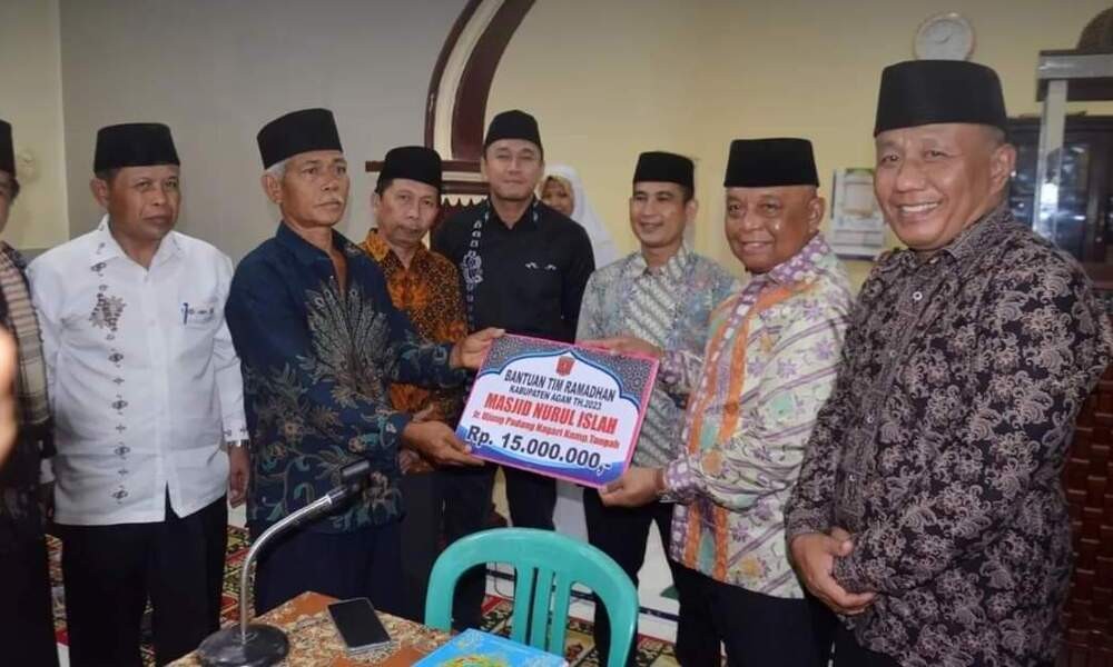 AGAM, CARAPANDANG.COM - Tim Safari Ramadan (TSR) Kabupaten Agam yang dipimpin Sekretaris Daerah Kabupaten Agam, Drs Edi Busti MSi kunjungi Masjid Nurul Ishlah, Jorong Ujuang Padang, Nagari Kampuang Tangah, Kecamatan Lubuk Basung, Sabtu (25/3).