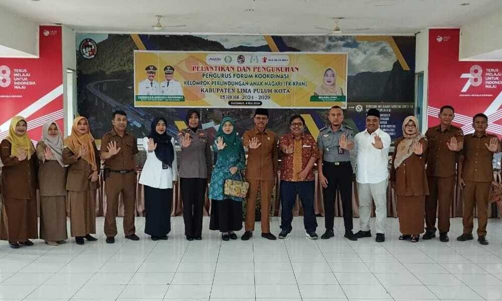 LIMA PULUH KOTA, CARAPANDANG - Dalam rangka meningkatkan perlindungan terhadap anak, Bupati Limapuluh Kota Safaruddin Dt. Bandaro Rajo melakukan Pengukuhan Pengurus Forum Koordinasi Kelompok Perlindungan Anak Nagari (FK-KPAN) periode 2024-2029 di Aula Kantor Bupati Limapuluh Kota, Sarilamak, Senin (06/05/2024)
