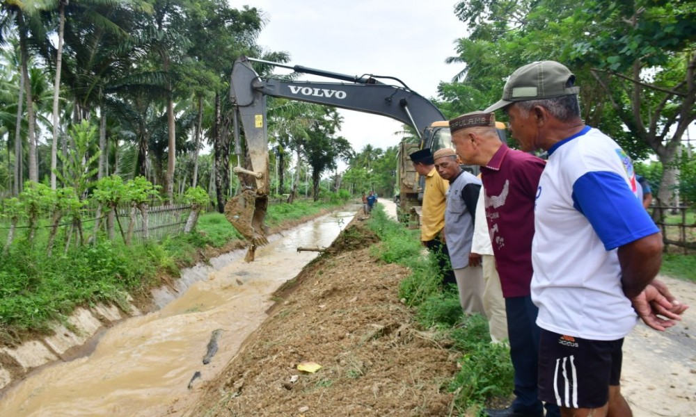 POHUWATO, CARAPANDANG.COM - Memastikan sejauh mana pekerjaan pengerukan saluran irigasi, Bupati Pohuwato, Saipul A. Mbuinga kembali melakukan peninjauan langsung terhadap pengerukan saluran irigasi di dua tempat yakni di Desa Mootilango, Kecamatan Duhiadaa dan Desa Sipatana, Kecamatan Buntulia, Senin, (22/01/2024).