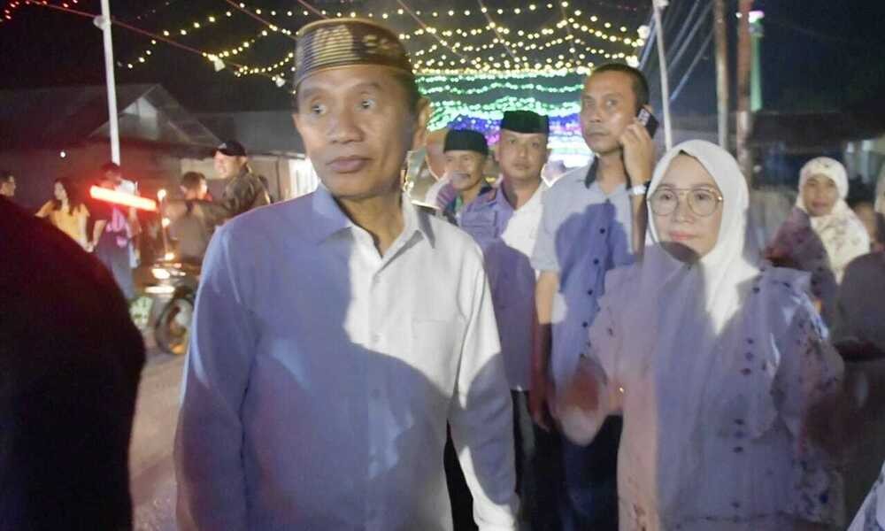 POHUWATO, CARAPANDANG.COM - Berbeda dari tahun-tahun kemarin, kini malam pasang lampu atau tumbilotohe di Kabupaten Pohuwato meriah. Sebut saja di Kecamatan Buntulia di Desa Sipatana dipantau langsung Bupati Pohuwato, Saipul A. Mbuinga bersama Ketua TP.PKK Pohuwato, Selvi Mbuinga Monoarfa usai melakukan pemasangan lampu di rumah jabatan bupati, Senin, (17/4/2023).