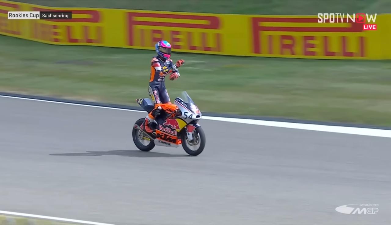 CARAPANDANG - Pembalap muda Indonesia Veda Ega Pratama berhasil meraih tempat pertama pada Race 2 Red Bull Rookies Cup (RBRC) 2025 di Sirkuit Sachsenring, Hohenstein-Ernstthal, Minggu.