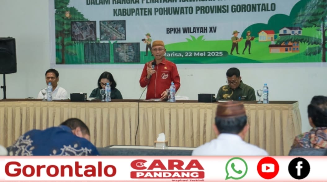 Acara yang diselenggarakan oleh Balai Pemantapan Kawasan Hutan (BPKH) Wilayah XV di Aula Warkop Omah, Marisa, turut dihadiri oleh sejumlah pejabat dan perwakilan instansi terkait, diantaranya Kepala BPKH Wilayah XV, Ir. Maryuna Paputungan, M.P, Perwakilan Kepala Kantor Wilayah Pertanahan Provinsi Gorontalo, Istiana Prasetia Tri Utami, S.ST, Kabid Perencanaan, Pemanfaatan Hutan dan KSDAE DLHK Provinsi Gorontalo, Khaeruddin, S.Hut., M.Si., Perwakilan Dinas Pekerjaan Umum dan Penataan Ruang Provinsi Gorontalo, Akbar Ar, S.P.W.K., Tim Inventarisasi dan Verifikasi (INVER) dari tingkat kecamatan dan desa se-Kabupaten Pohuwato, Kamis, (22/05/2025).